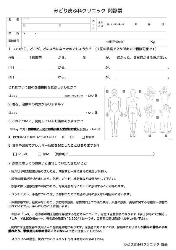 以下のファイルをダウンロードし、印刷してご記入ください。受診の際、持参していただくと受付時間を短縮できますので、どうぞご活用ください。